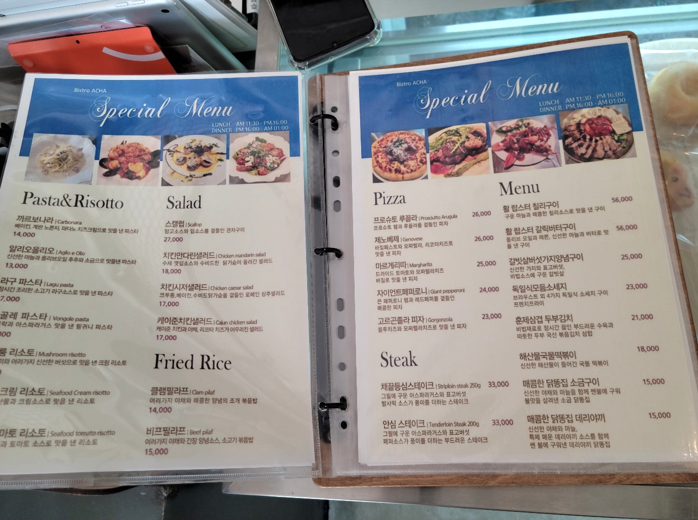 메뉴판을 보고 무슨 메뉴가 이렇게 많나 신기했는데 알고보니 이곳은 낮과 밤 다른 분위기를 연출하는 곳이었어요