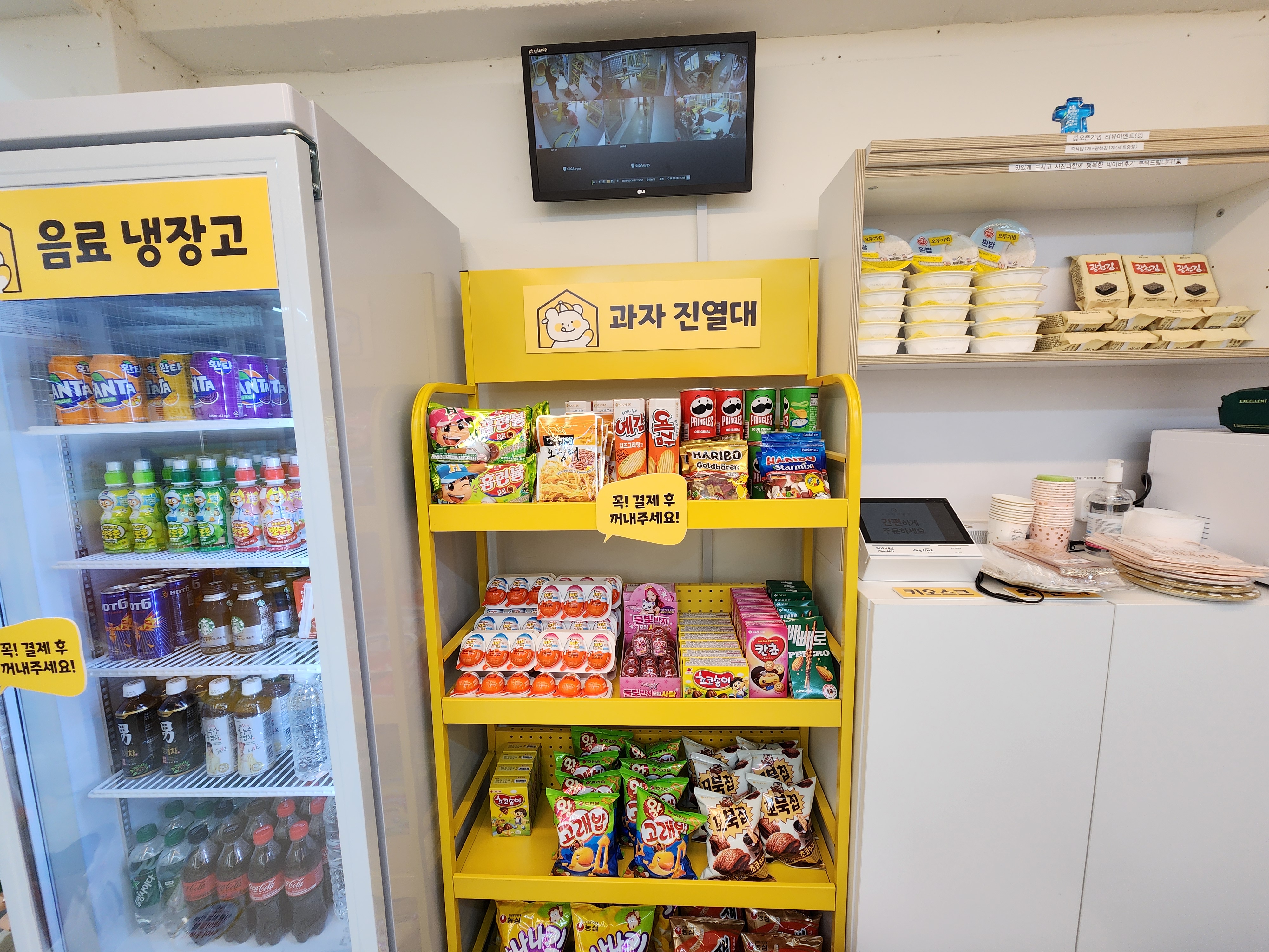 이곳은 무인으로 간식만 결제해서 먹고, 나머지 음식은 외부에서 유입이 되어서 진짜 좋아요