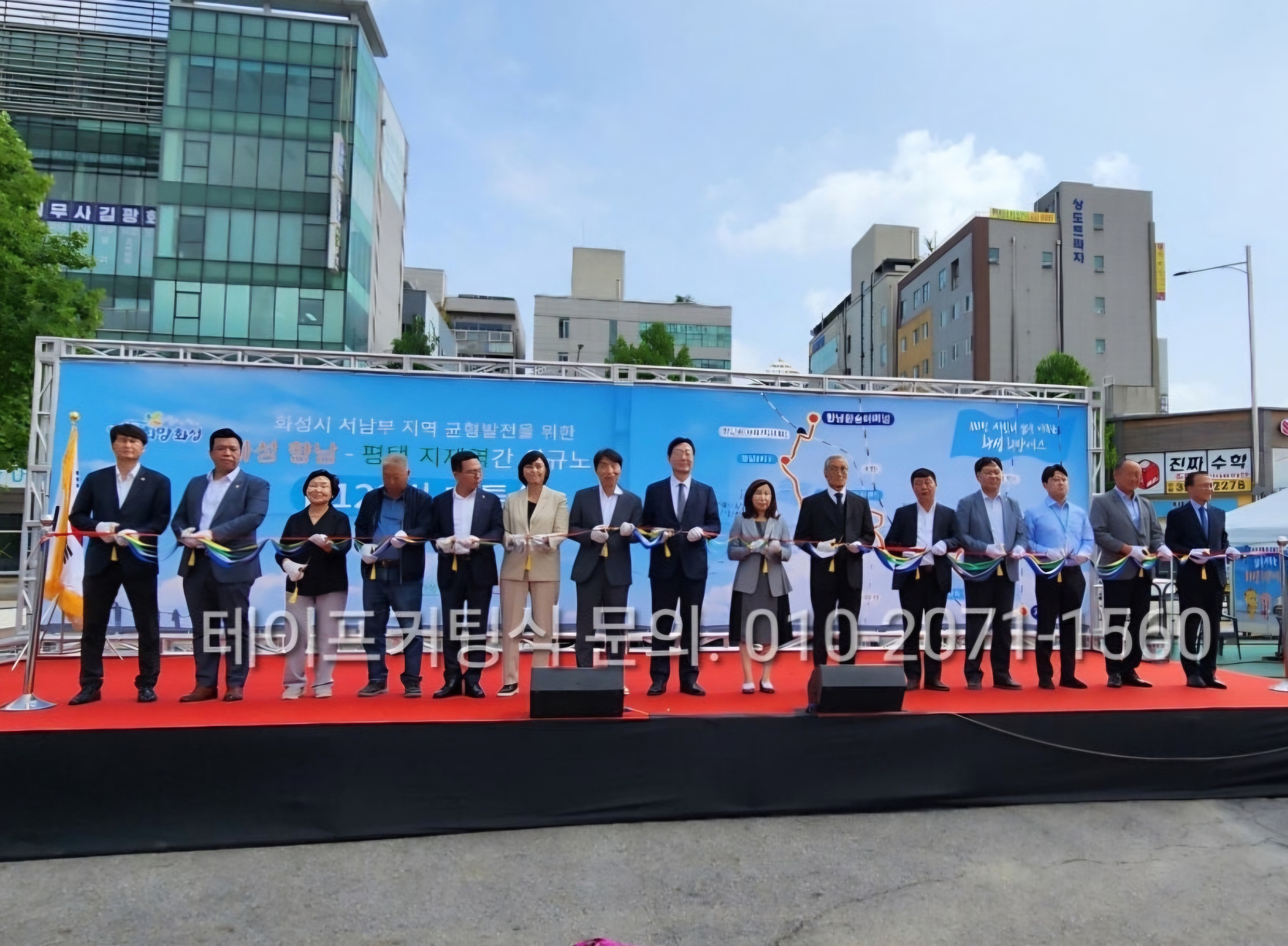 테이프컷팅을 하기 직전에 내빈들께서 정면을 보시고 사진 촬영을 해야 하는데