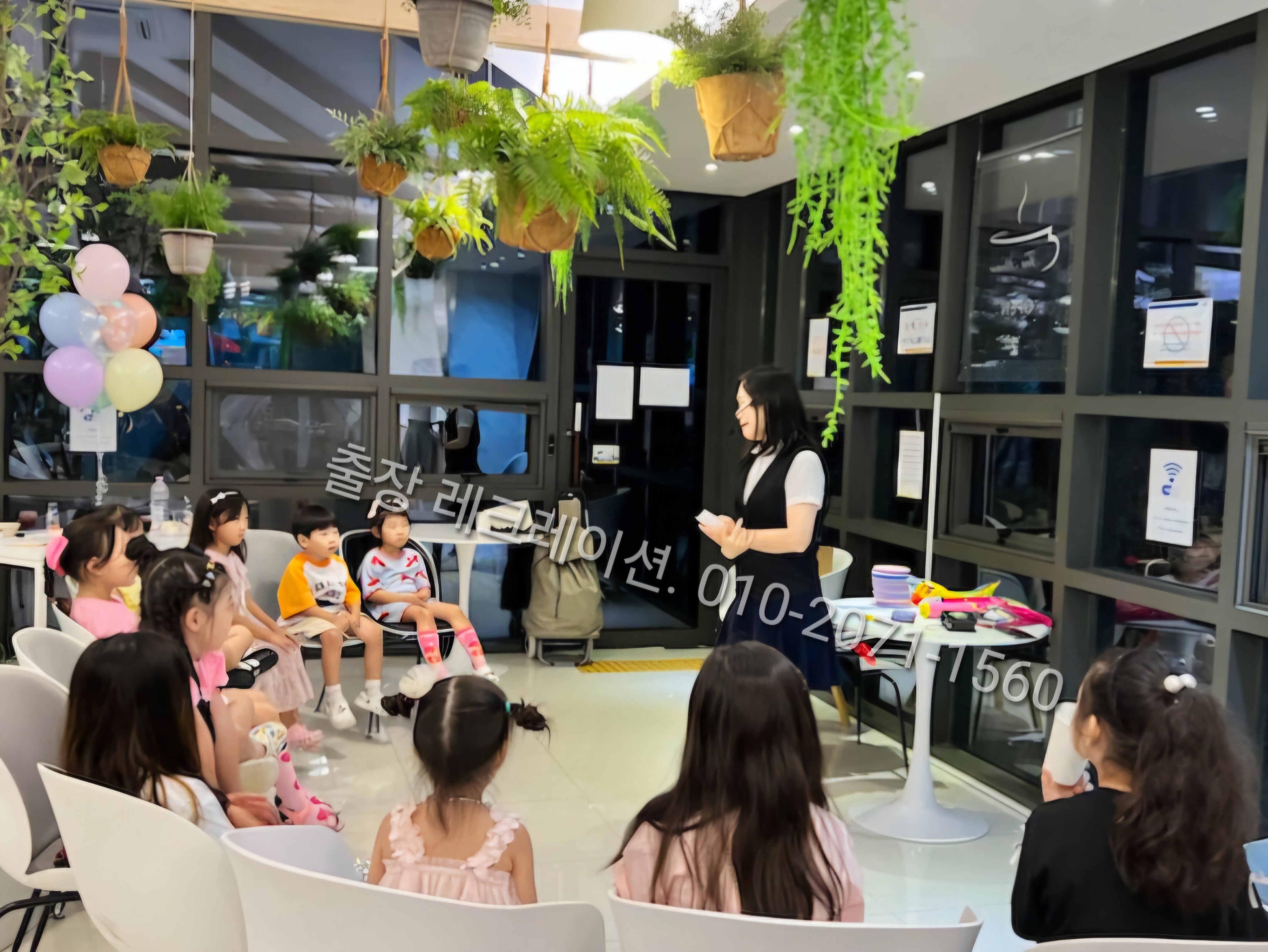 참여한 어린이들이 모두 앉을 수 있는 공간이 있고, 앞에 사회자가 설 수 있는 공간만 있다면