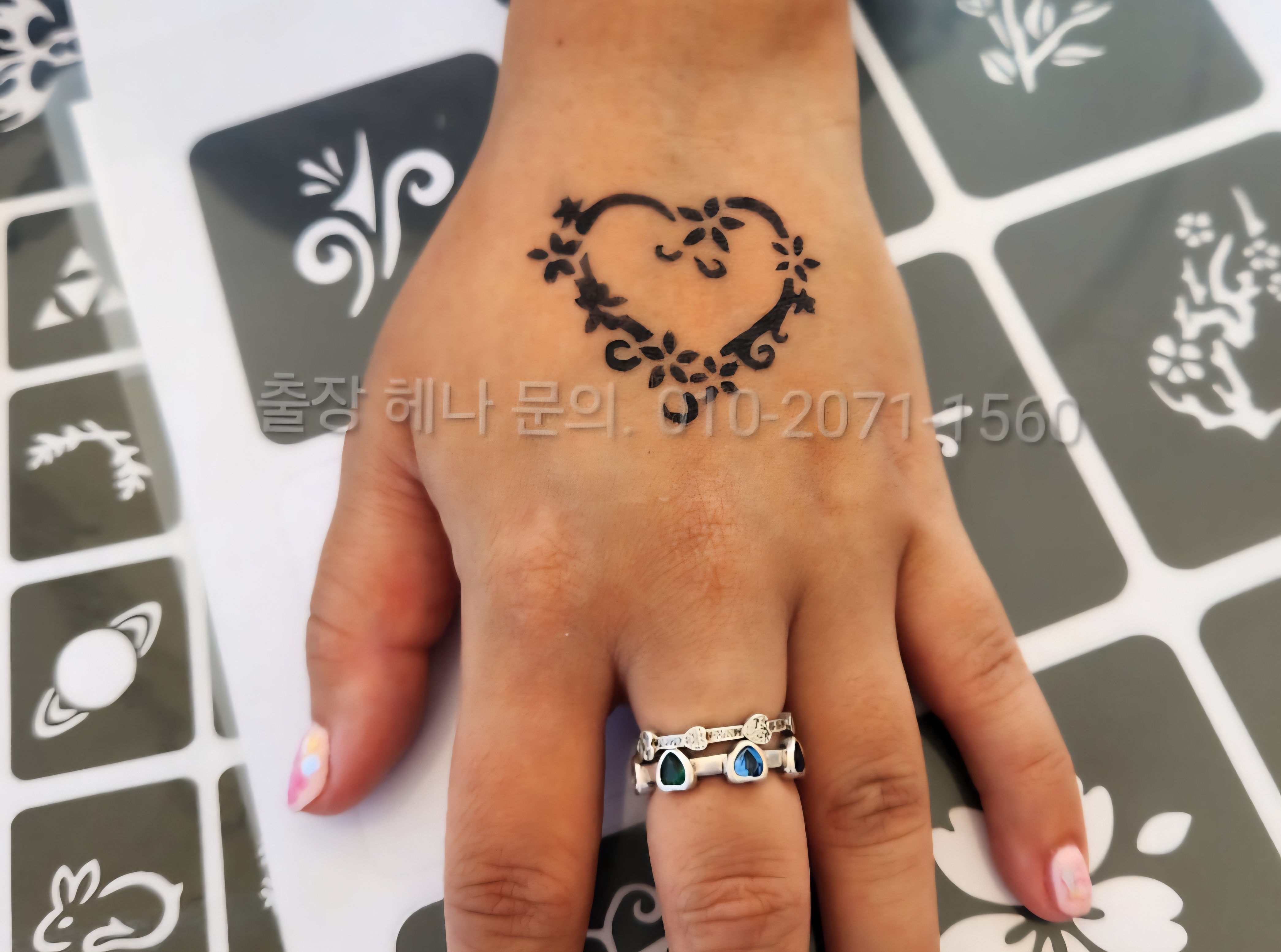스텐실 헤나 스티커 제작 문의. 헤나 출장 전문