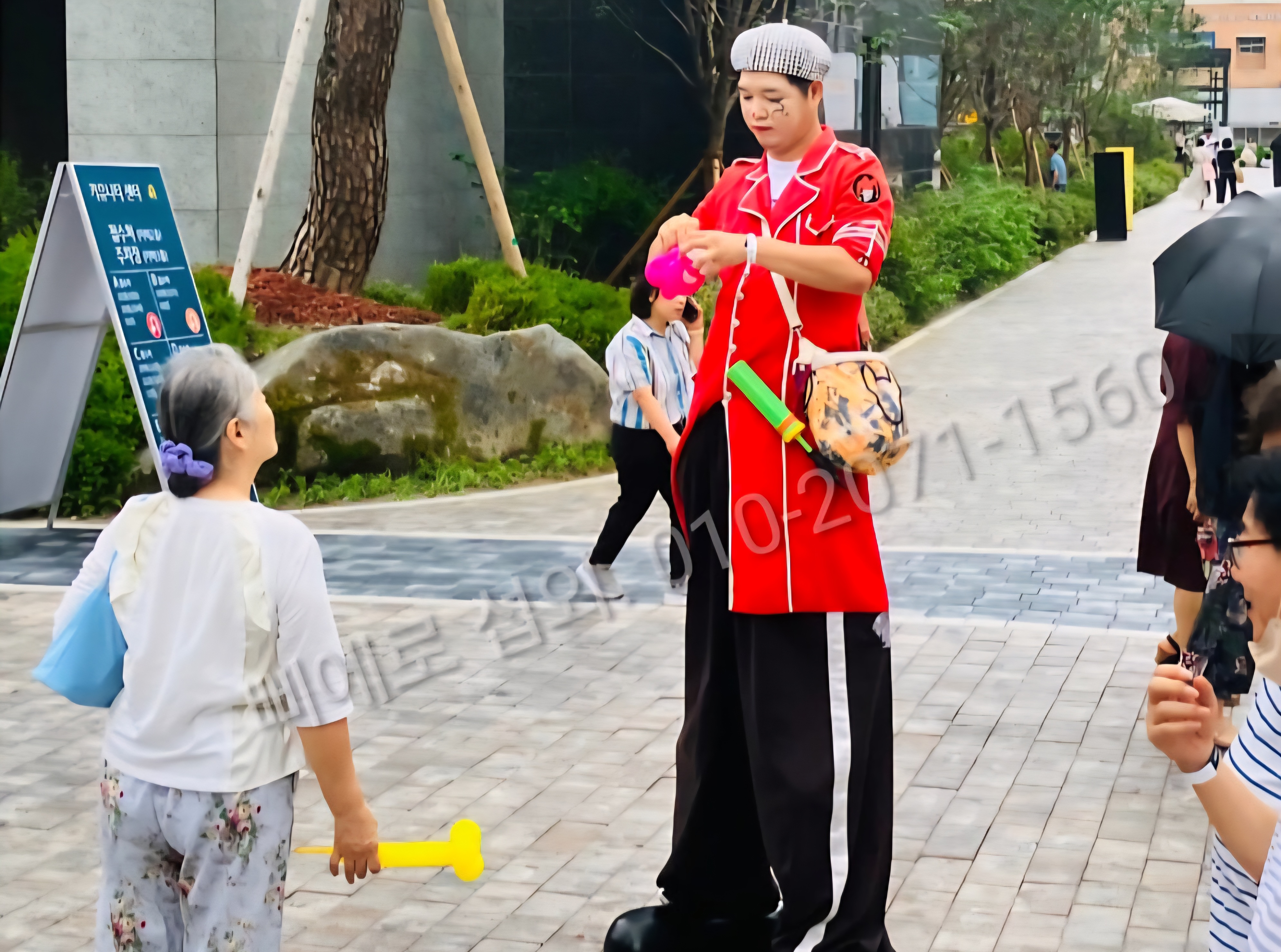 삐에로가 돌아다니면서 사람들에게 풍선을 나누어줄 수도 있고,