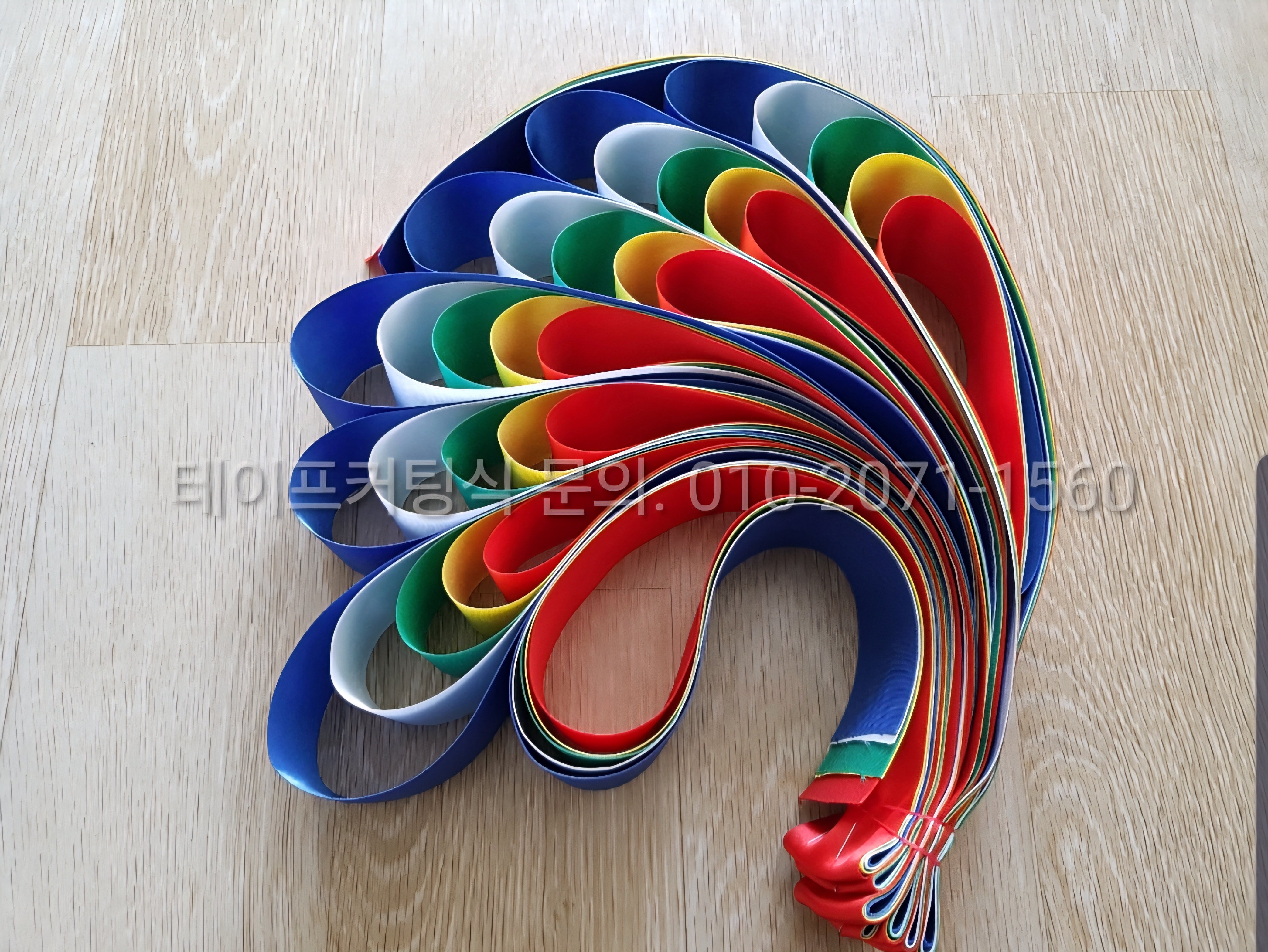 커팅봉을 세우고, 커팅봉 사이에 오색띠만 끼워서